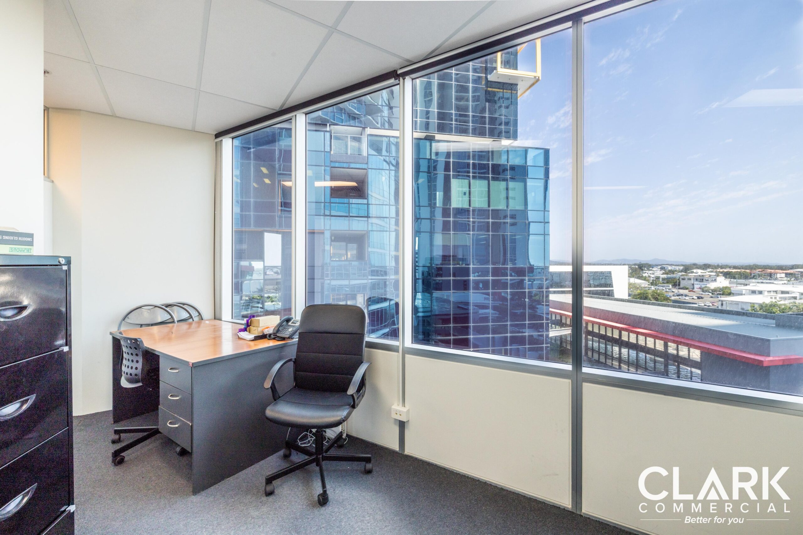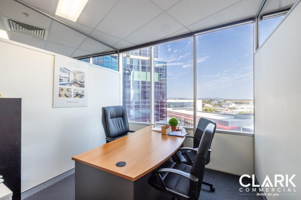 CLARK Commercial, as exclusive agents, present Suite 2609 in Southport Central Tower 2 to the market for immediate sale. Suite 2609 is 79sqm of fitted professional office space, consisting of a reception area, boardroom, private offices, and kitchenette. The office benefits from great natural light, North facing views, and one (1) secure basement car space. Suite 2609 is ideally located in the heart of Southport CBD, providing convenient access to key facilities such as the Magistrates Court, Legal Precinct, G:Link station, and nearby commercial precincts, along with ample staff amenities.