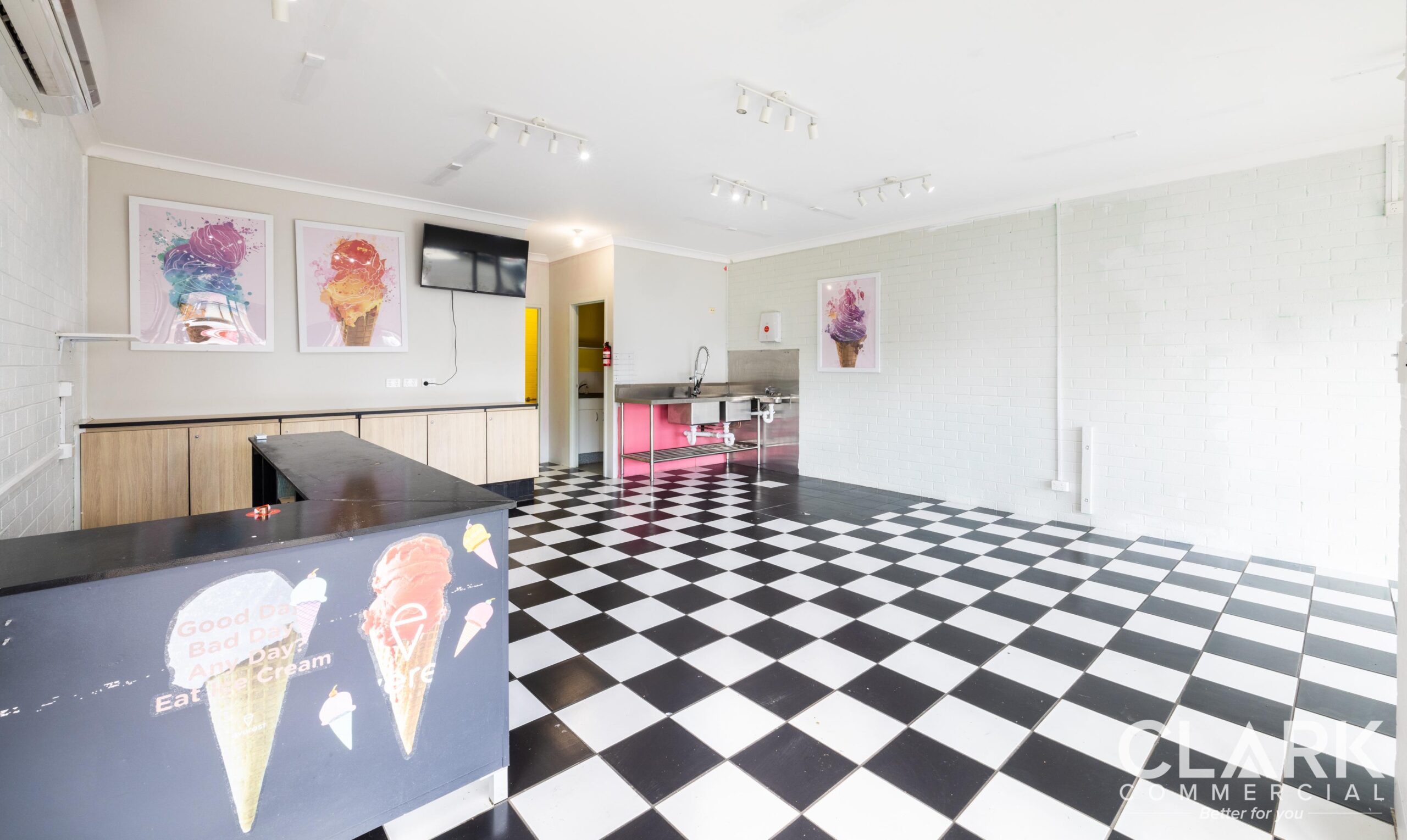 • Big window area at the front of the shops with 2 sliding doors for access – rear door