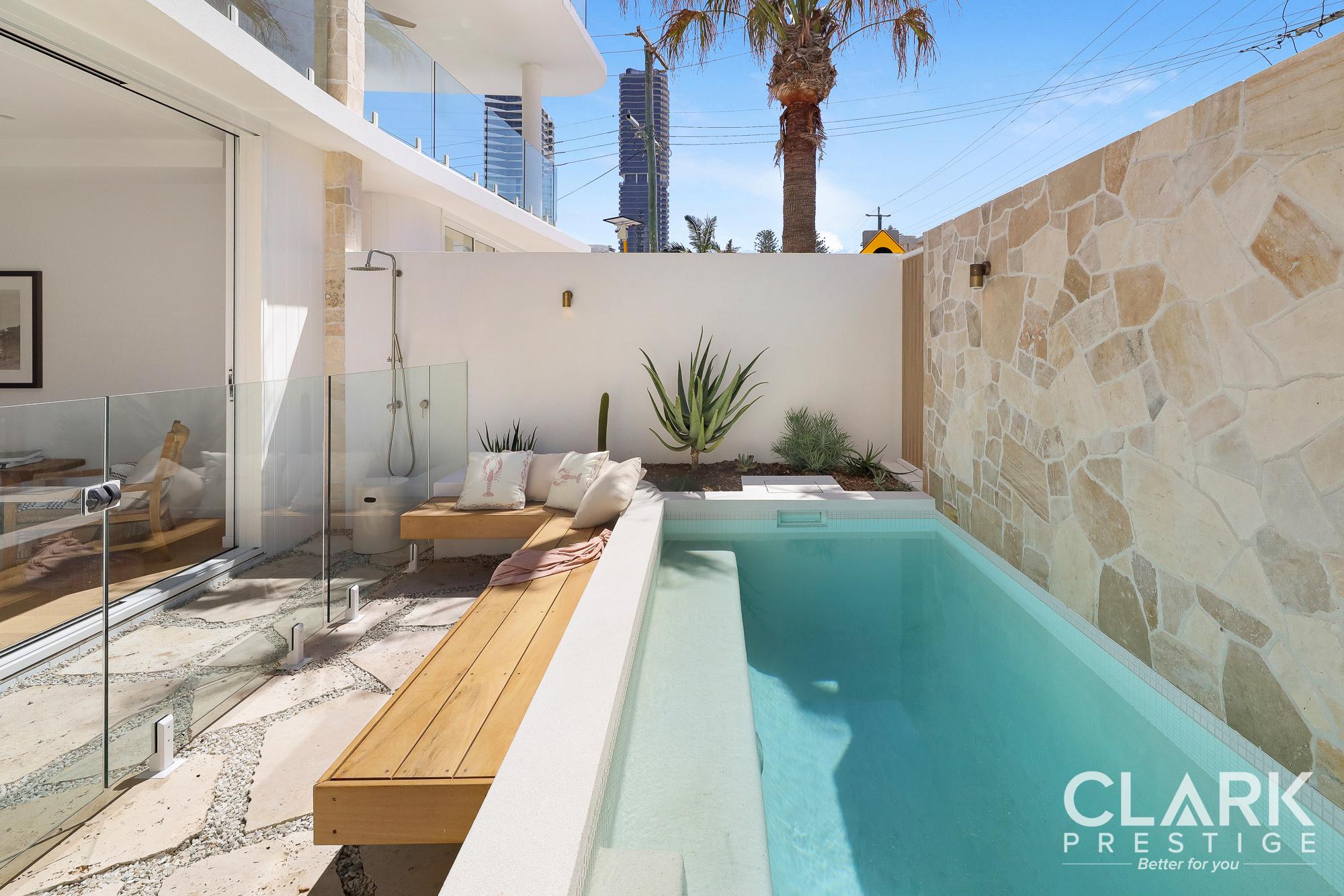 • Pool and outdoor courtyard, beach shower, individualised landscape.