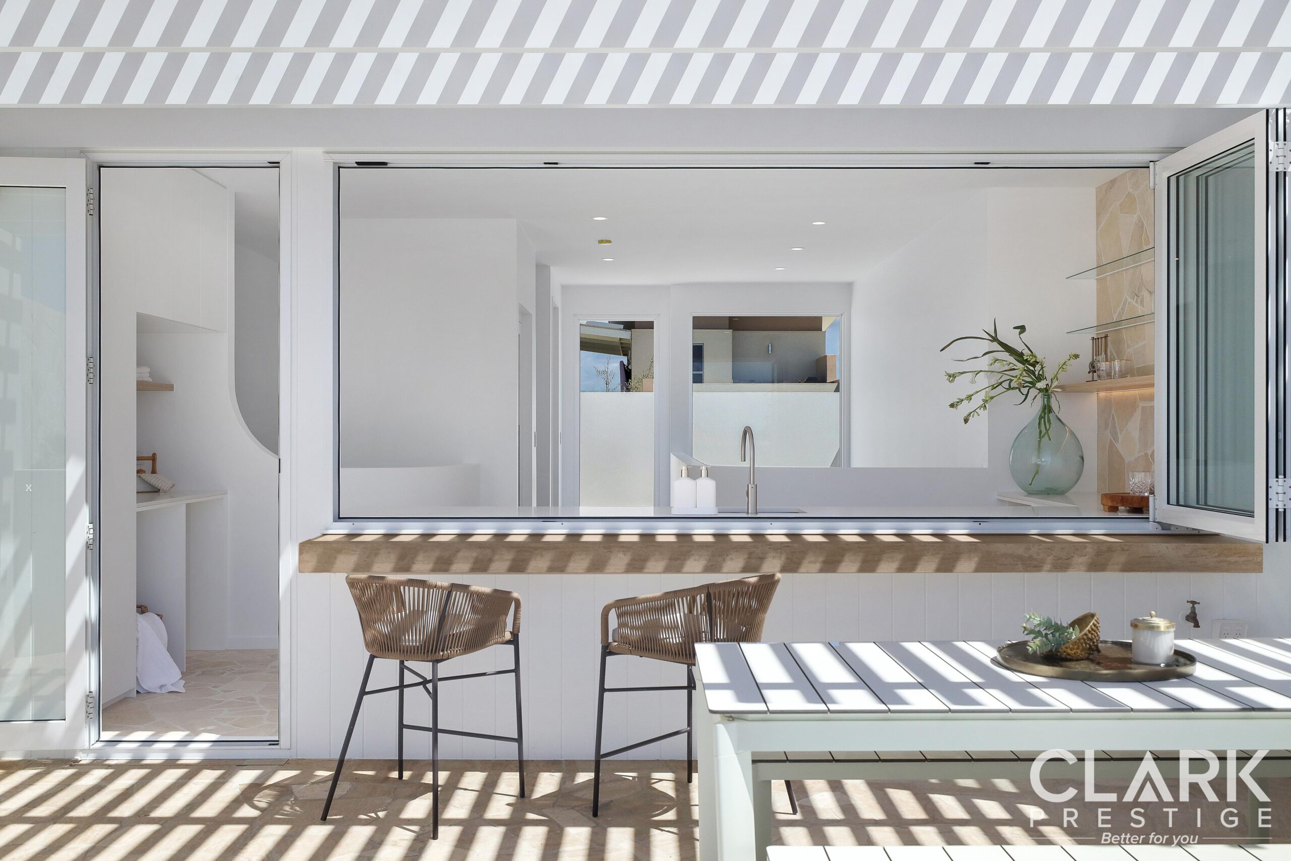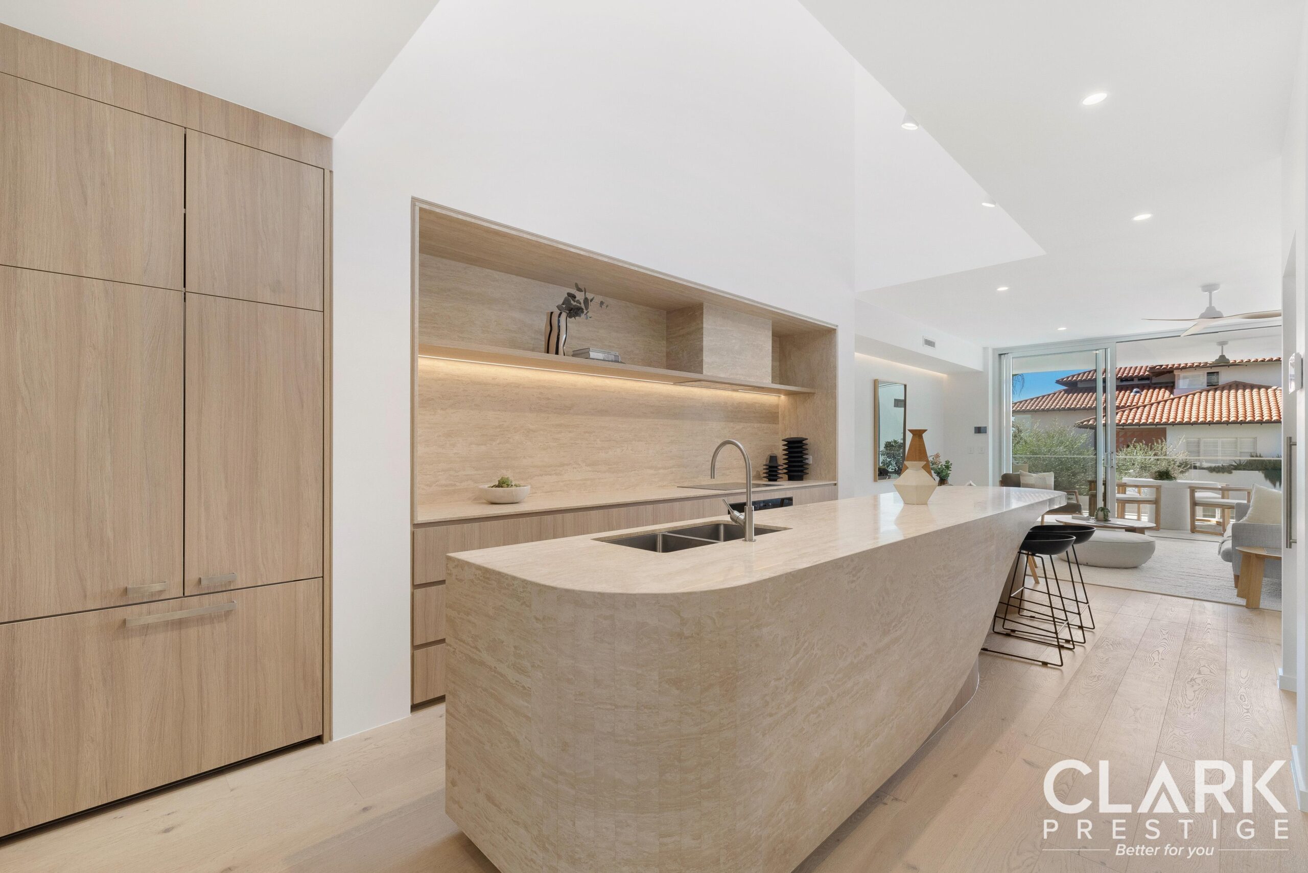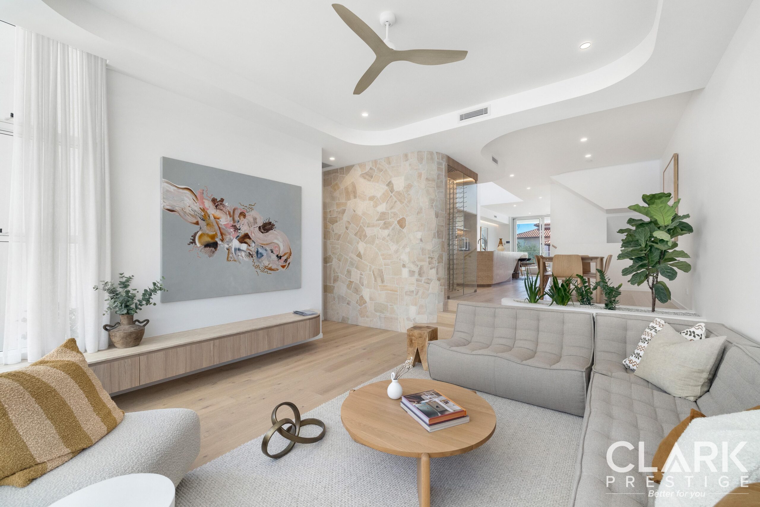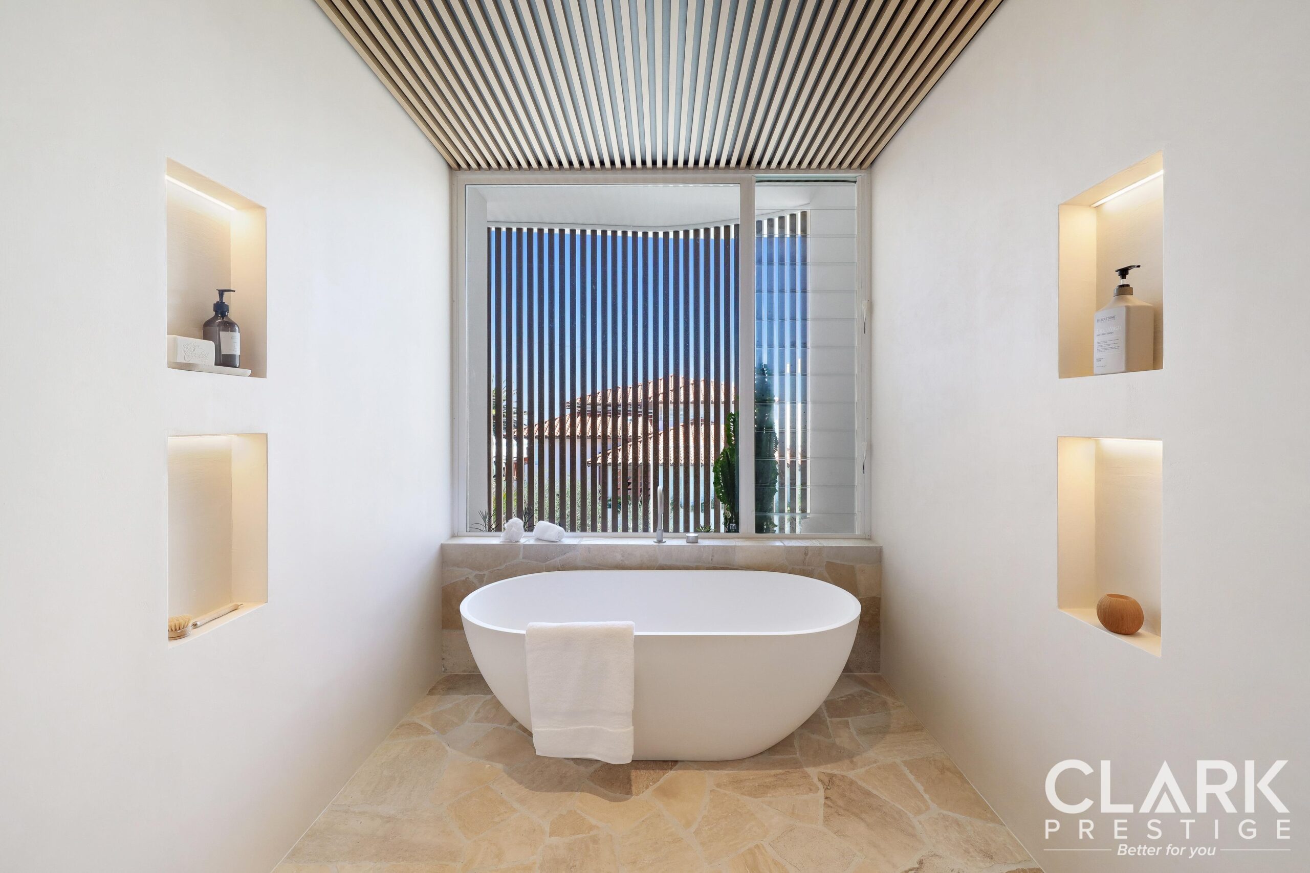 • Natural stones and coastal finishes throughout