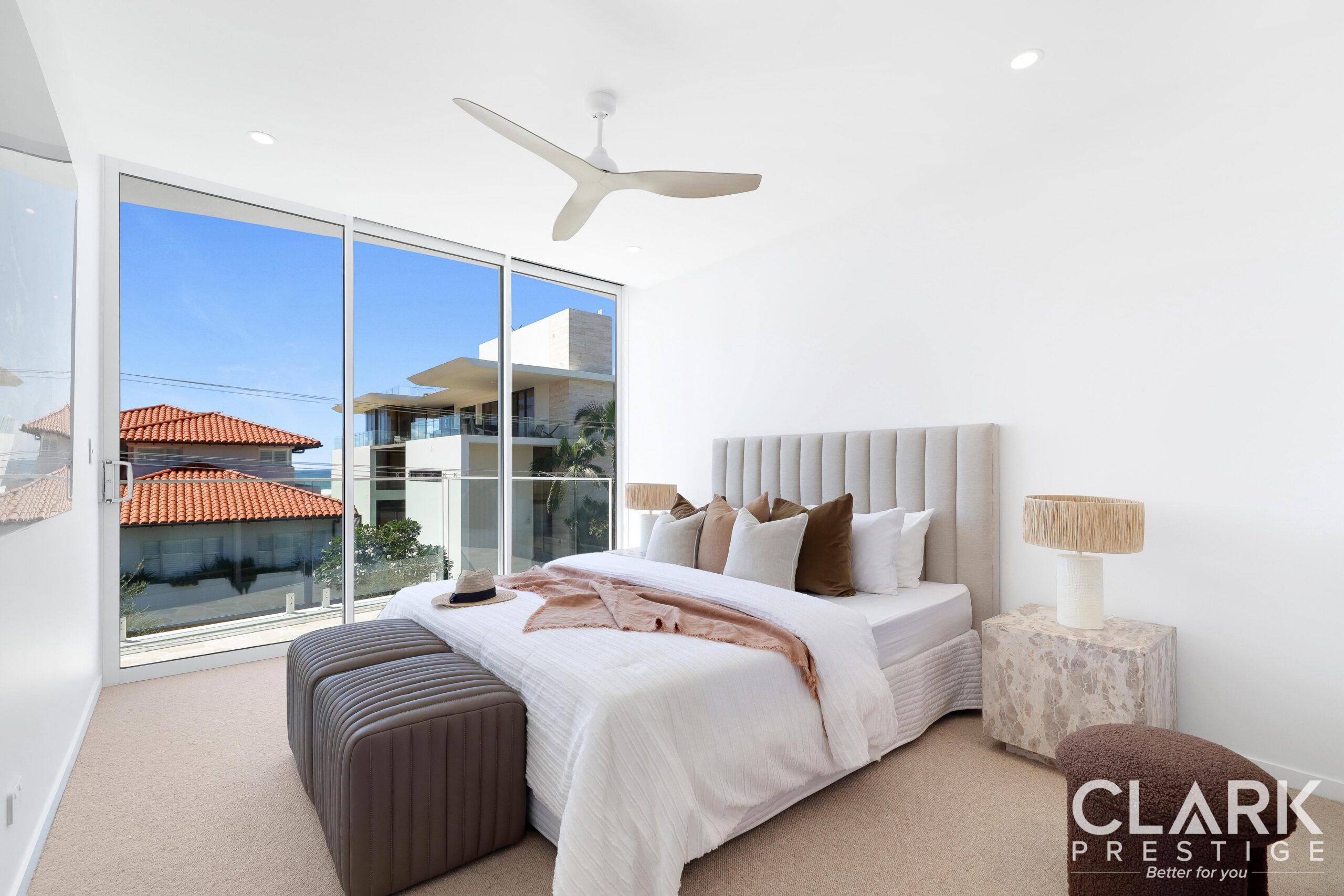 • Ocean facing master bedroom with floor to ceiling glass